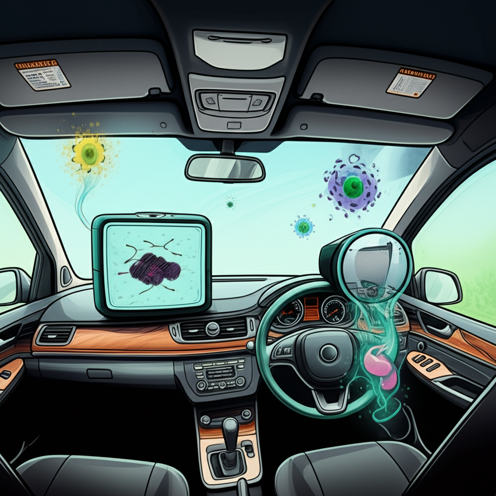 2. Polusi Internal: Asap rokok (jika ada), senyawa organik volatil (VOCs) yang dilepaskan dari material interior mobil (plastik, kulit, lem), bakteri dan virus yang menempel, bau makanan, serta bulu hewan peliharaan.
